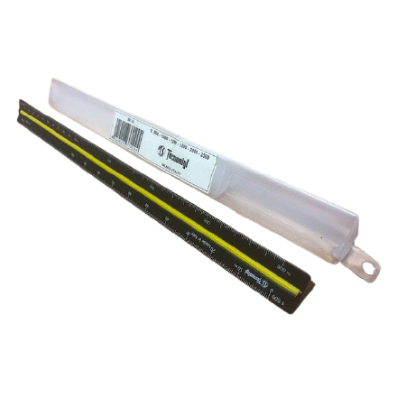 The 30cm triangular measuring device is made from aluminium and provides up to 6 different scales - one on each edge of the ruler.